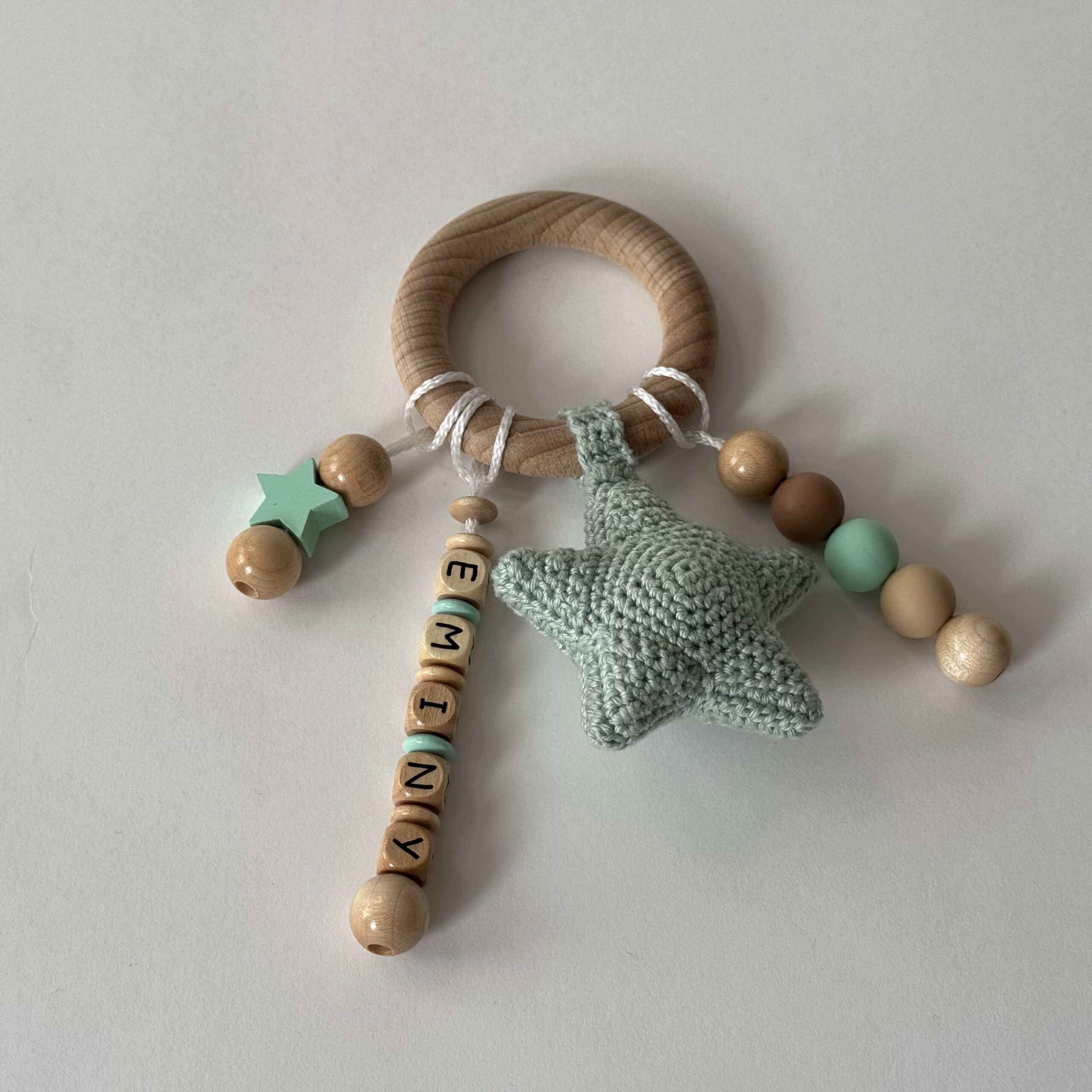 Unsere handgefertigten Rasseln fördern die Sinne deines Babys und sorgen für spielerische Unterhaltung. Sie sind individuell gestaltbar und ein wunderschönes Geschenk.